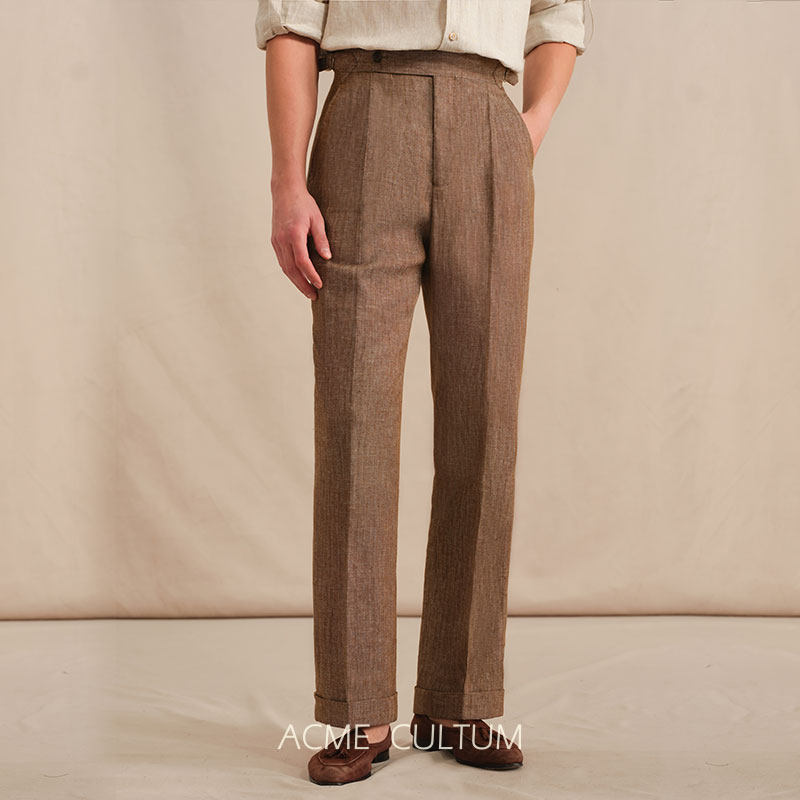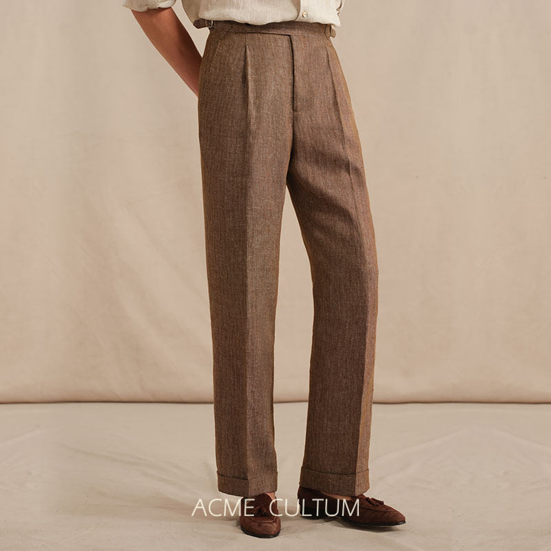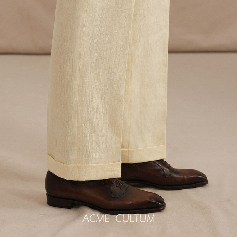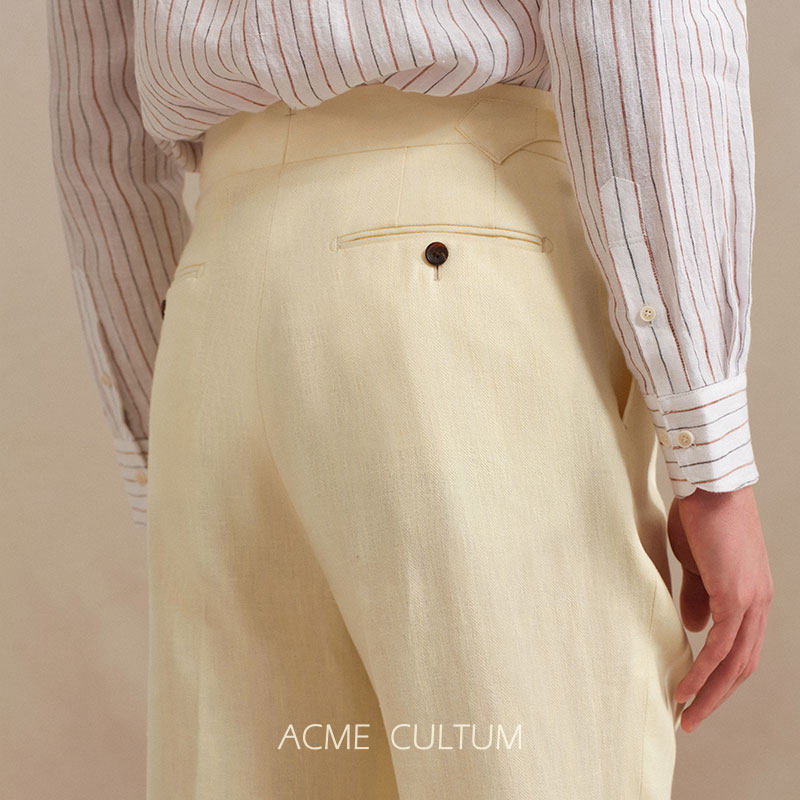 男垂坠感休闲长裤 那不勒斯单褶白西裤 cultum棉麻人字纹薄款 Acme