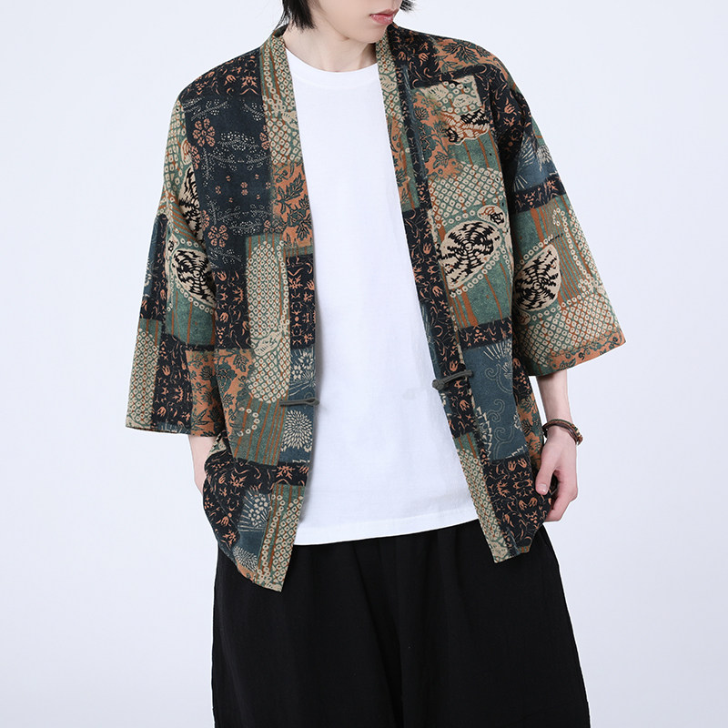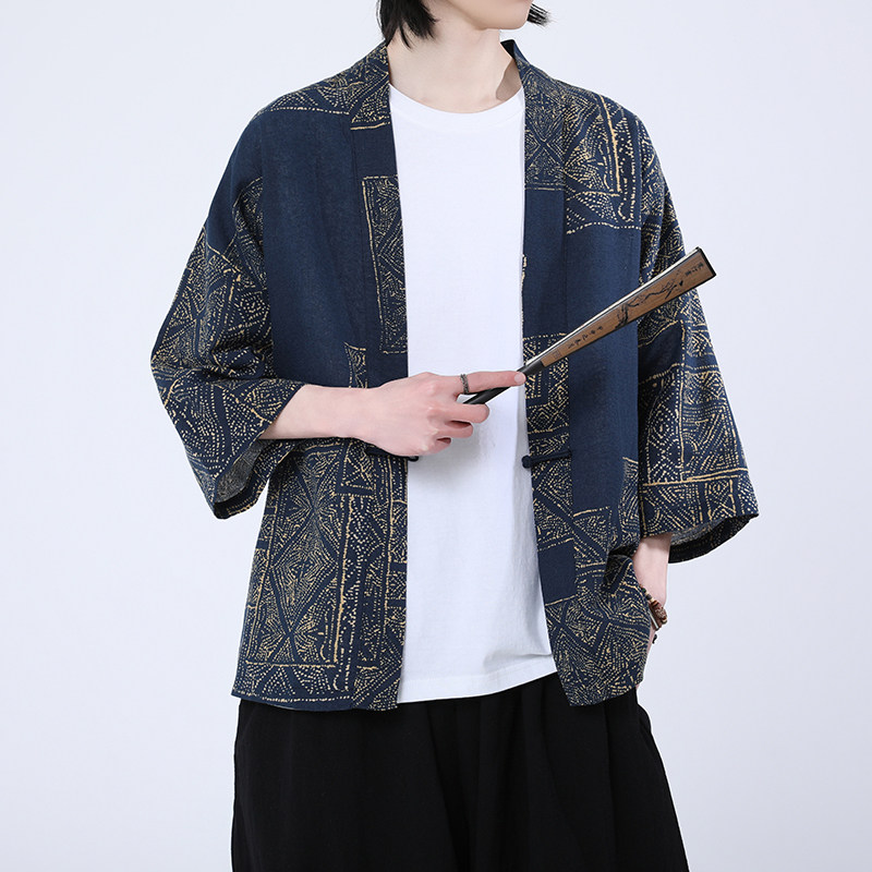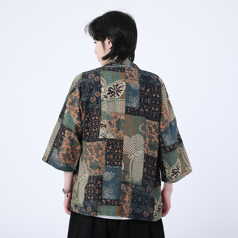 青泠谷原创汉服小团花全棉色织秋季 双面穿圆领袍