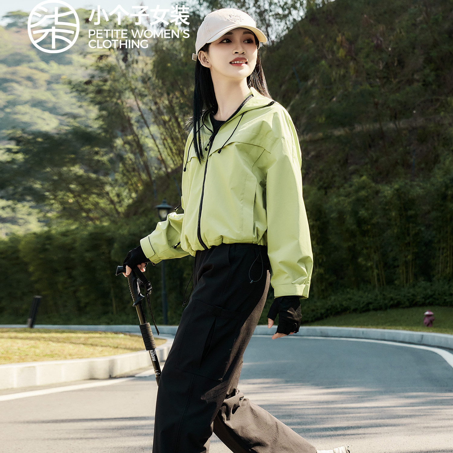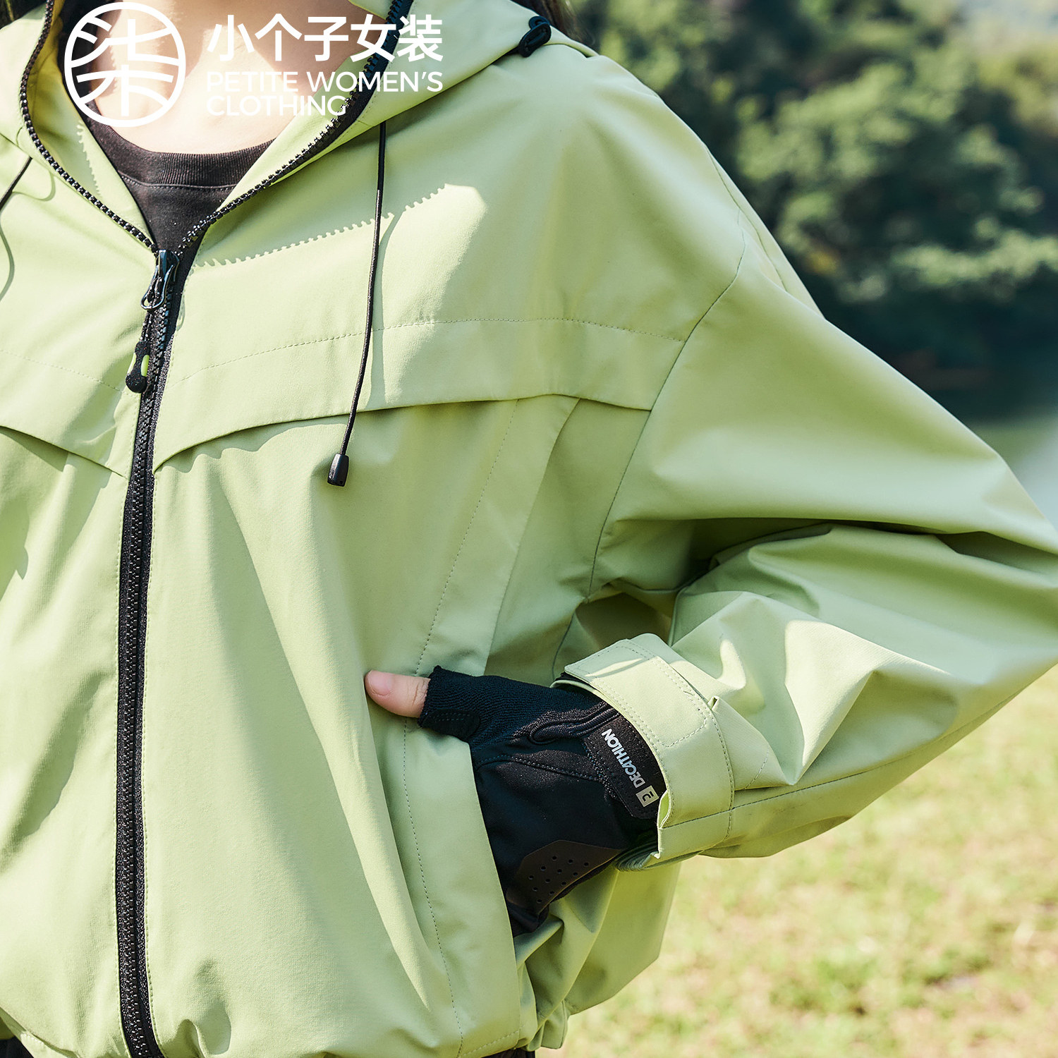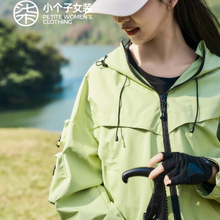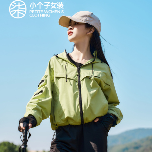 风抽绳设计风衣 连帽登山服轻盈工装 户外绿色短款 0021 大柒