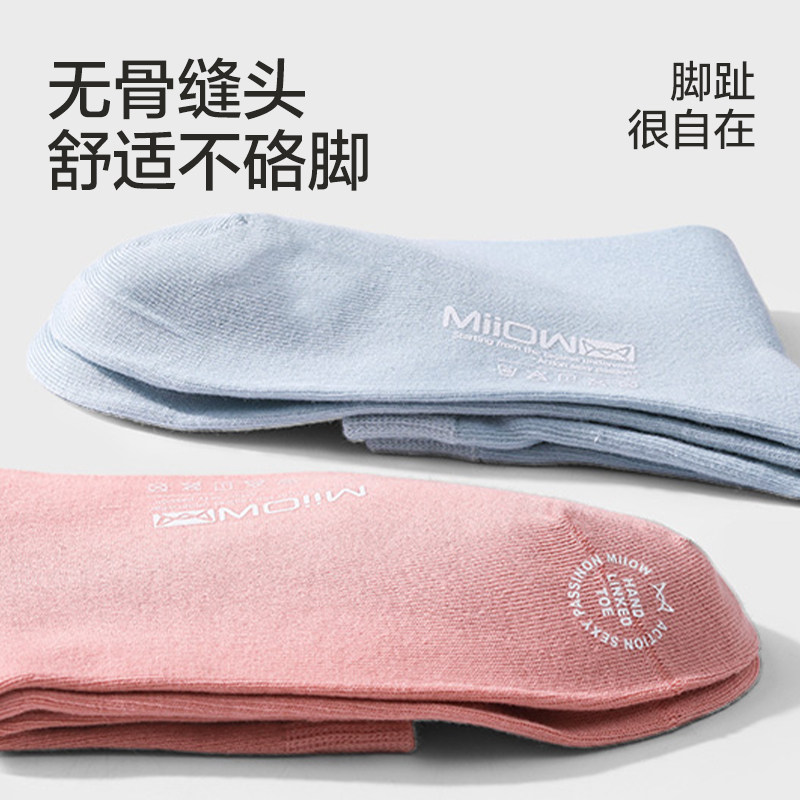 猫人袜子女士纯棉春秋中筒袜全棉抗菌防臭长筒棉袜 4双 折