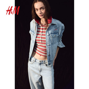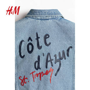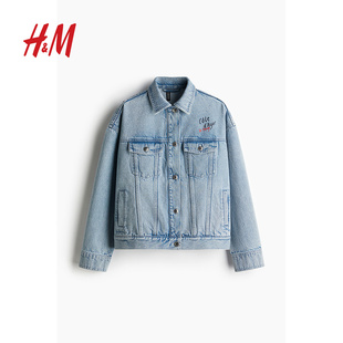 浅牛仔蓝卡车司机翻领纽扣外套1276999 新款 HM女装 短外套2025冬季