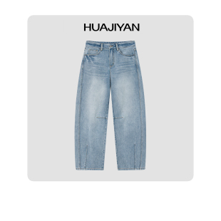 女 土耳其进口面料全棉水洗直筒宽松弯刀阔腿牛仔裤 华吉言 月亮