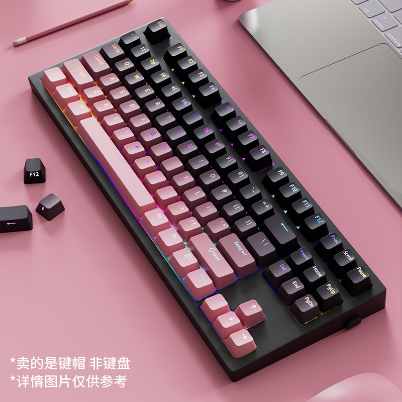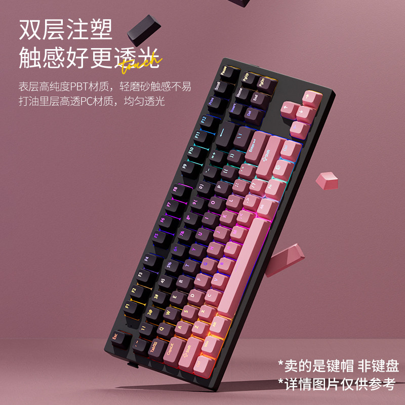 泰坦国度主播女孩键帽超天酱pbt热升华粉色核动力侧透适配wooting