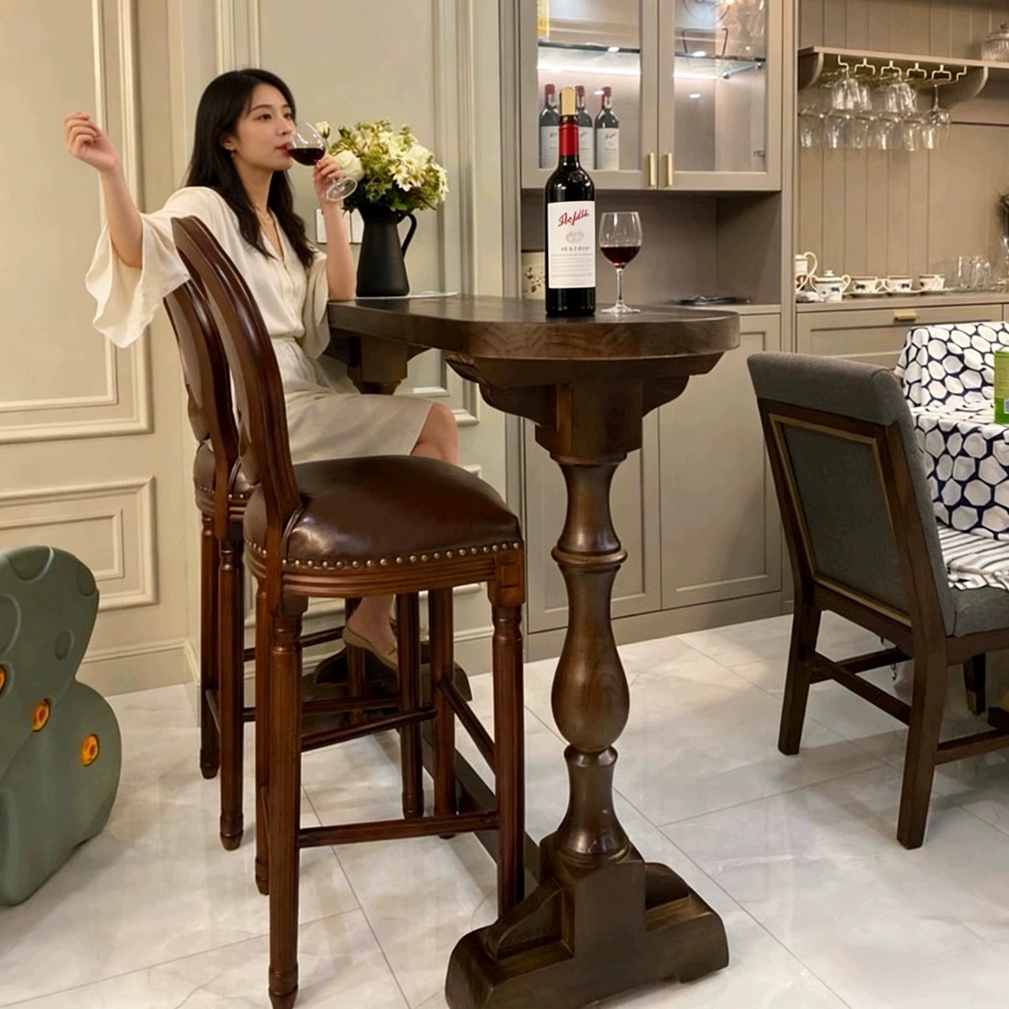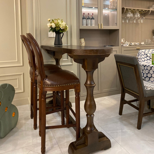 美式 乡村复古实木吧台桌罗马柱厨房阳台靠窗客厅高脚纯原桌椅组合