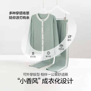 AM46A291 分身套装 爱慕24AW海藻家居服睡衣女秋冬圆领开襟长袖 长裤