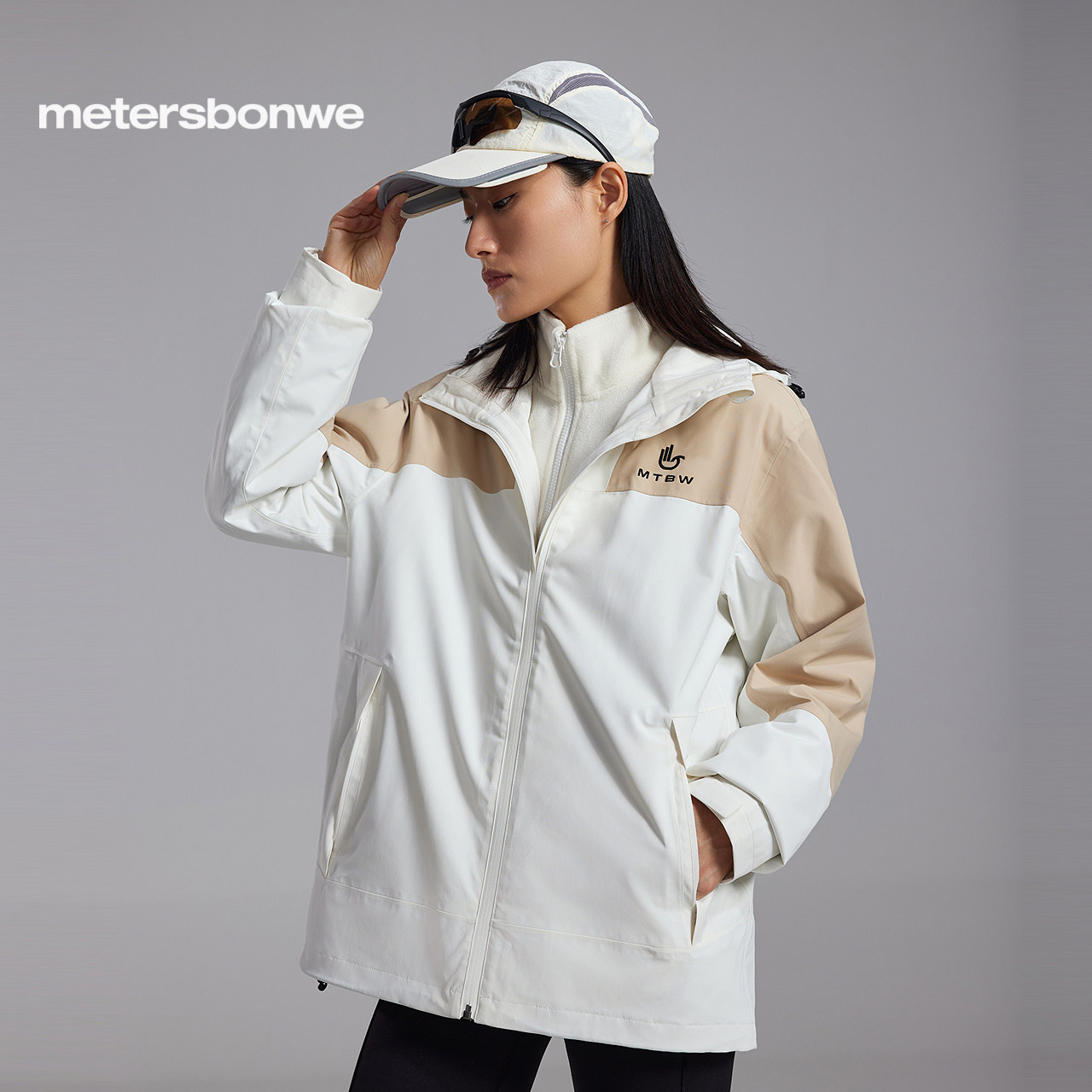 三防登山服 时尚 美特斯邦威男女拼色摇粒绒内胆冲锋衣春季 新款