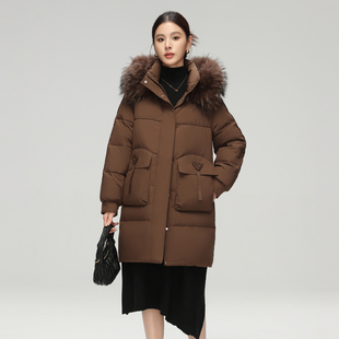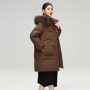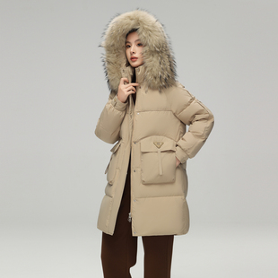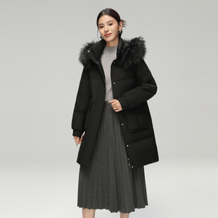 雪中飞2025冬新款 羽绒服连帽貉子毛领保暖百搭休闲 女士中长款