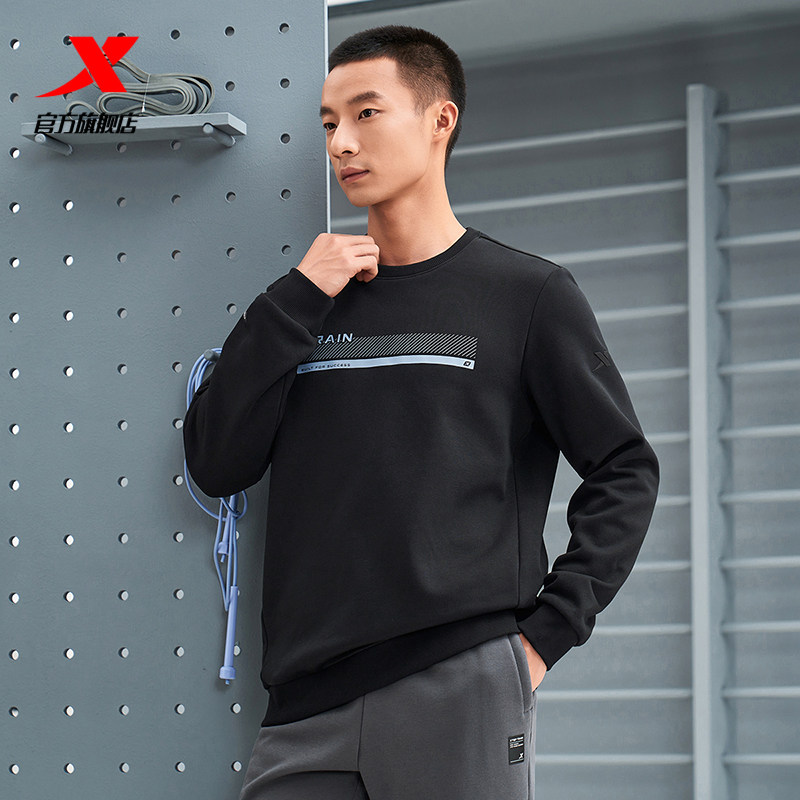 特步套头卫衣男2025年官方冬季 运动上衣976429920160 休闲圆领男装