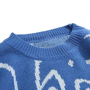 sleeved long loose sweater 宽松运动毛衣男 Round 圆领长袖 neck