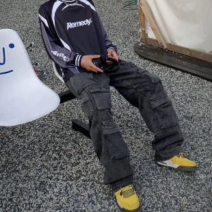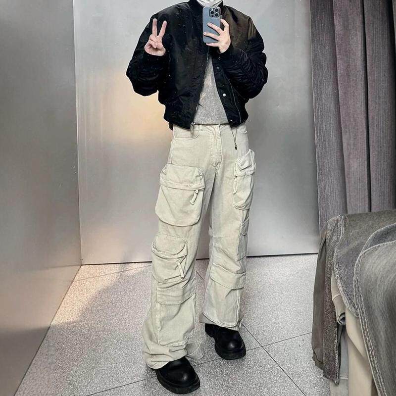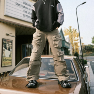 口袋水洗机能牛仔裤 平替26ss工装 神裤 秋休闲阔腿男 蒋劲夫同款