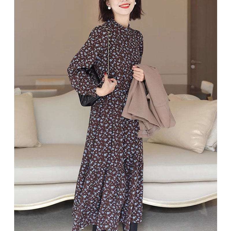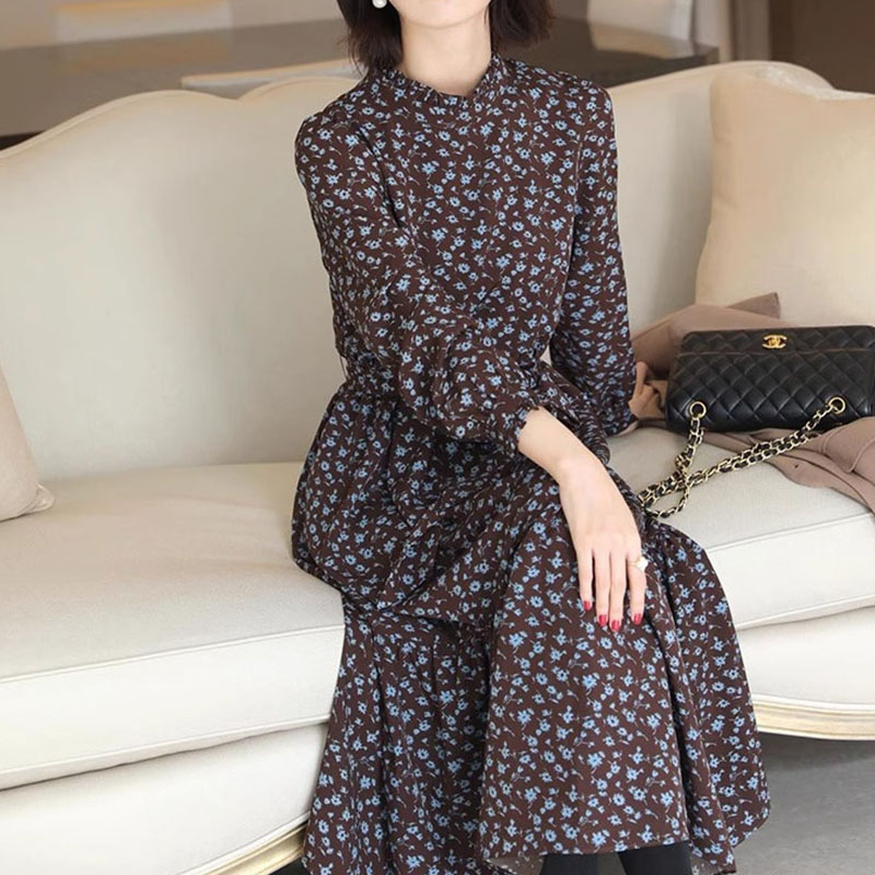 安妮不火海边度假纯棉碎花长裙女2025春夏新款 收腰连衣裙 微胖大码