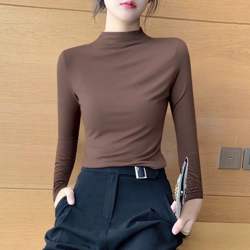 秋冬高级感打底上衣 内搭2025年新款 黑色莫代尔半高领打底衫 女长袖