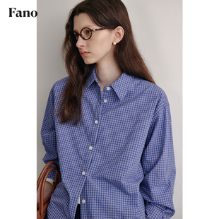 高级感休闲宽松上衣女 新款 范洛复古学院风蓝色格子衬衫 2026春季