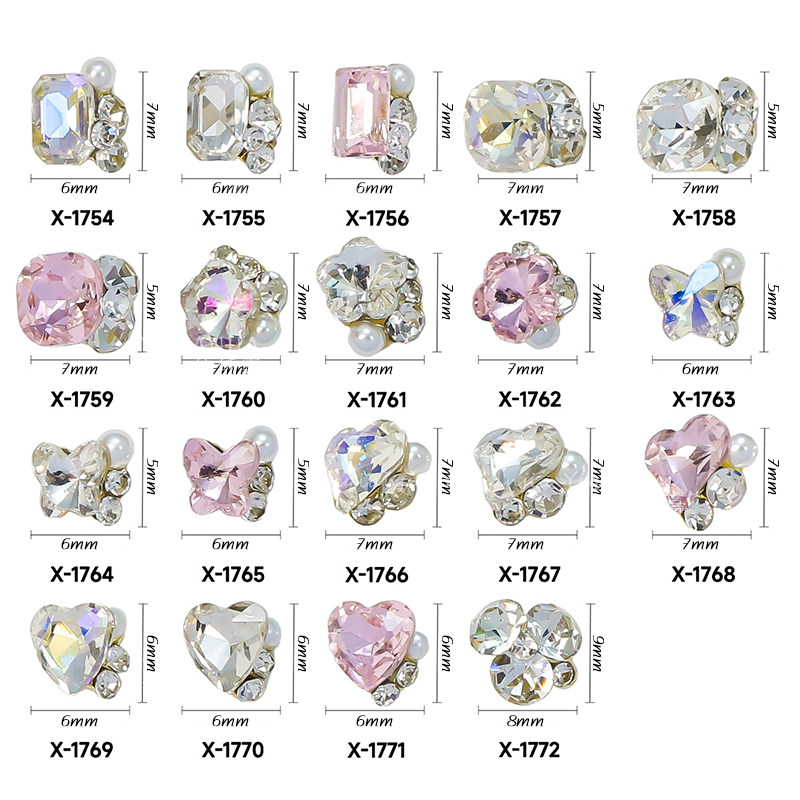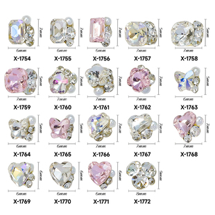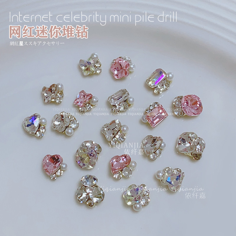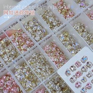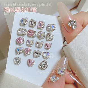 网红精致迷你堆钻石歪心蝴蝶珍珠长方水钻手指甲装 饰品多色100颗