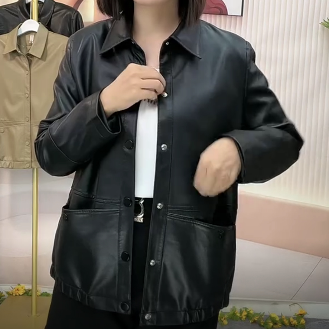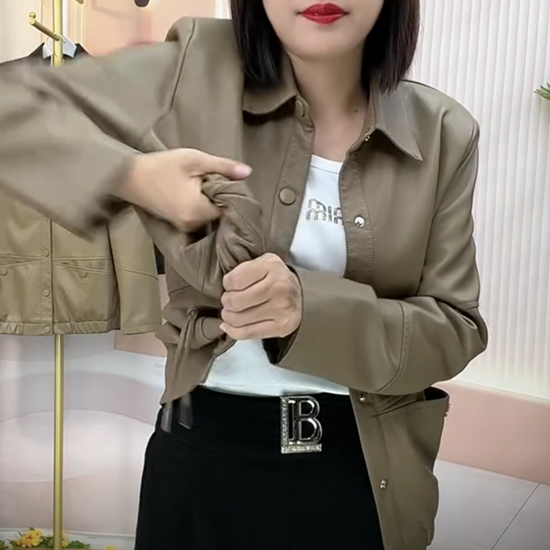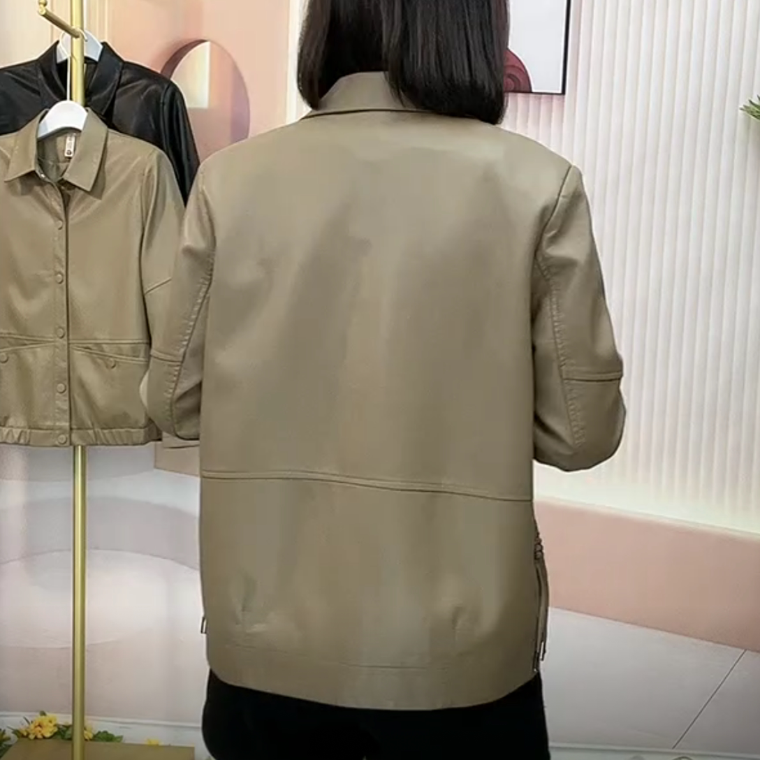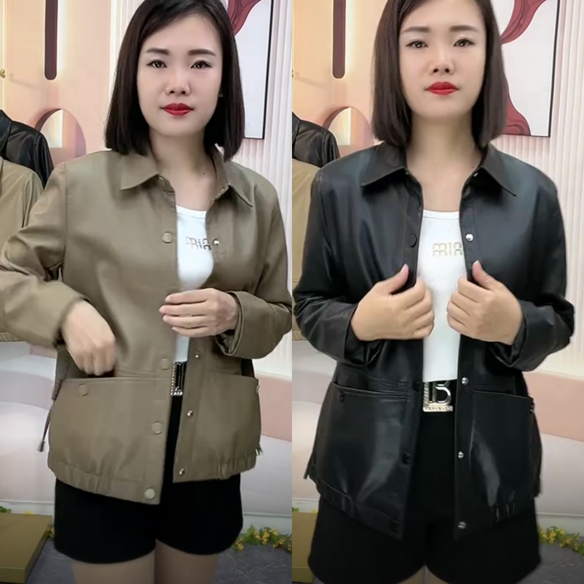 皮衣女时尚 中年妈妈简约软皮夹克洋气 休闲外套2025秋气质显瘦短款