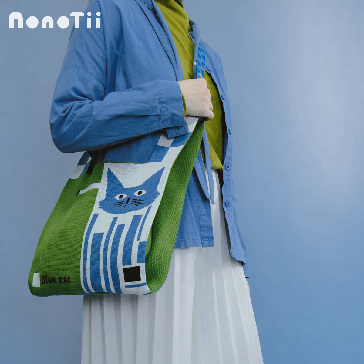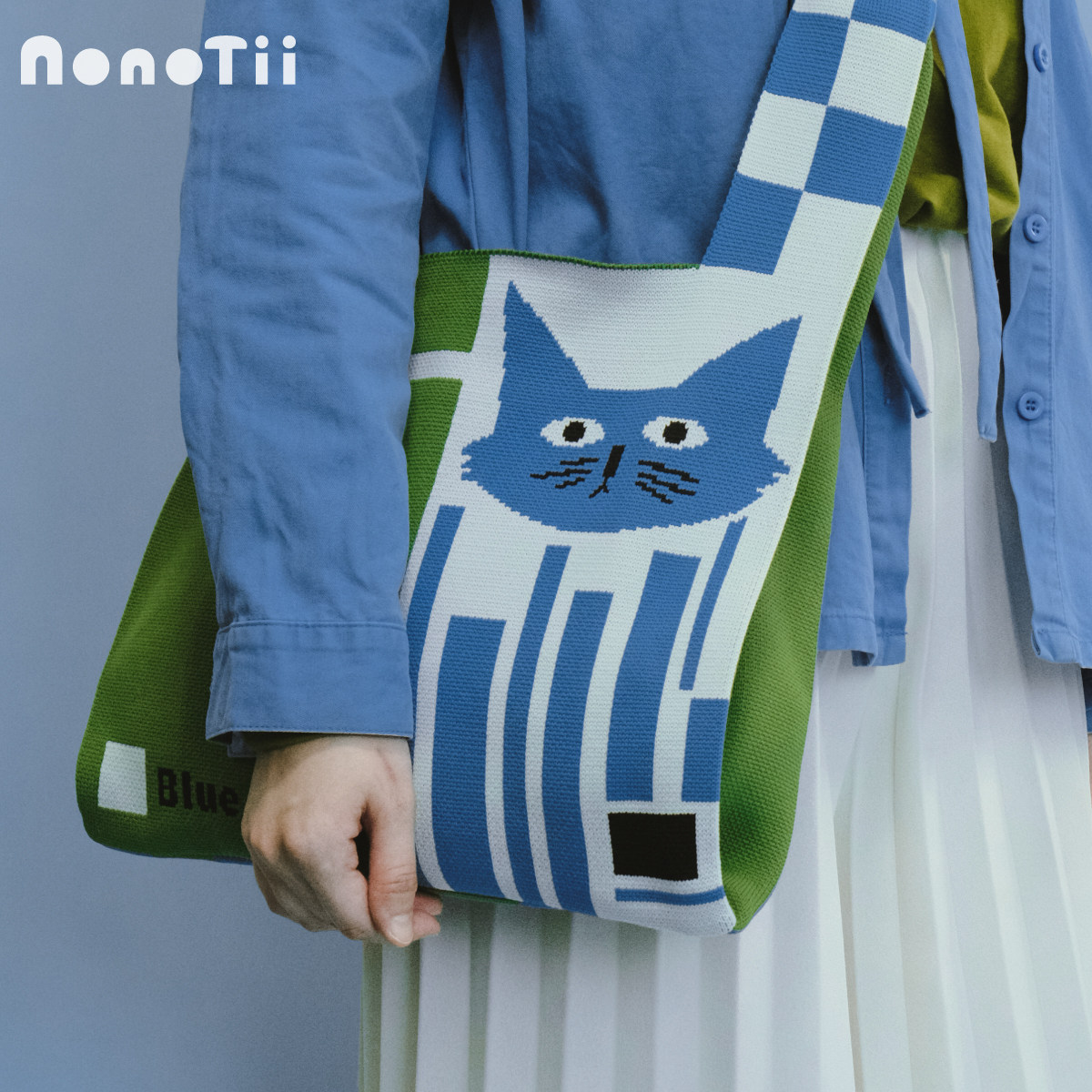 Nonotii包包女生猫咪图样新款 忧郁之猫 针织包手提斜挎包大容量