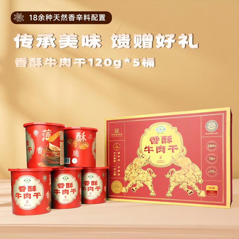 清梅居金字香酥牛肉干礼盒120gX5罐淄博特产清真食品送礼零食礼盒