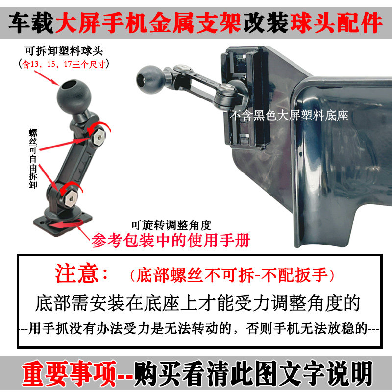 适用大屏手机支架金属球头改装 配件17mm球头配件如特斯拉比亚迪等