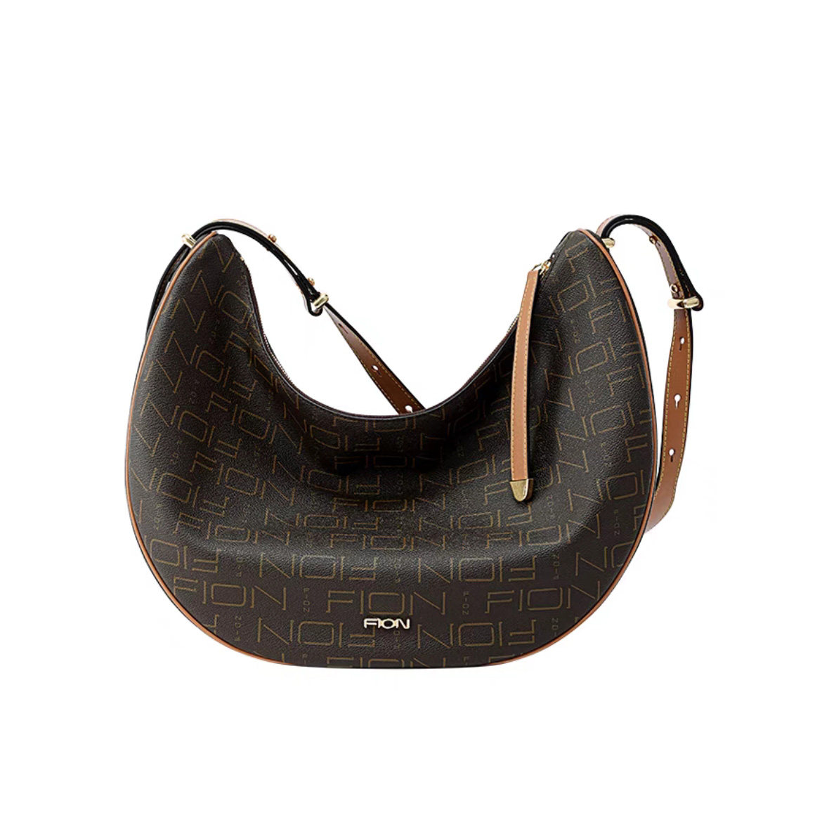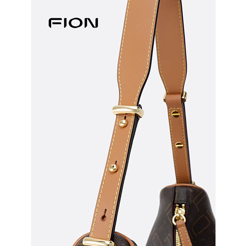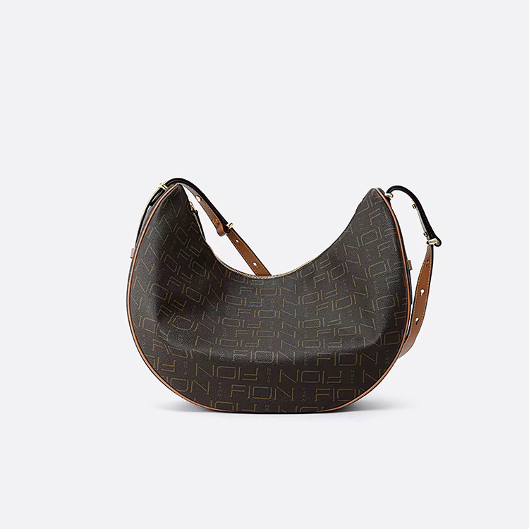 Fion菲安妮复古老花腋下包24新款 大容量单肩新月包斜挎FAAFJGC154