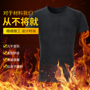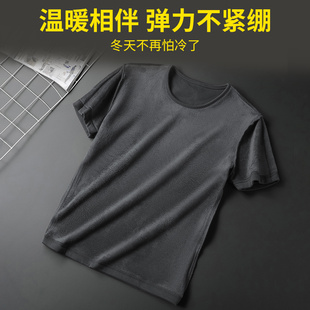 t恤男装 短袖 秋冬季 保暖内衣加绒加厚纯色短款 打底衫 半袖 加绒