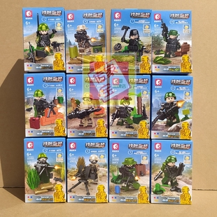 森宝积木102528黑鹰特警军人仔模型铁血重装 男孩子益智儿童小礼物