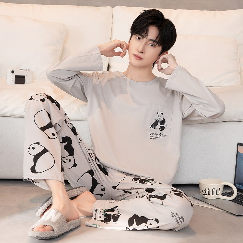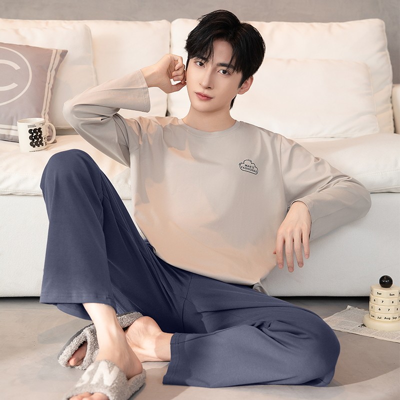 宽松家居服套装 睡衣男春秋款 男式 纯棉简约休闲男青少年秋冬季 长袖