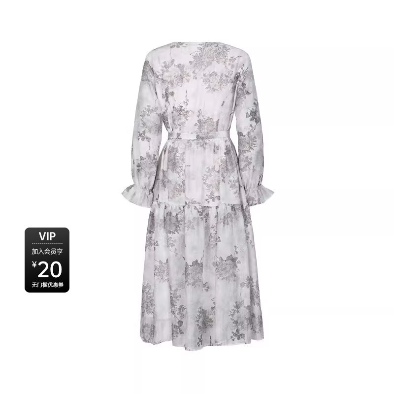 复古V领收腰印花连衣裙S243Z1239 法式 sdeer圣迪奥秋季 女装