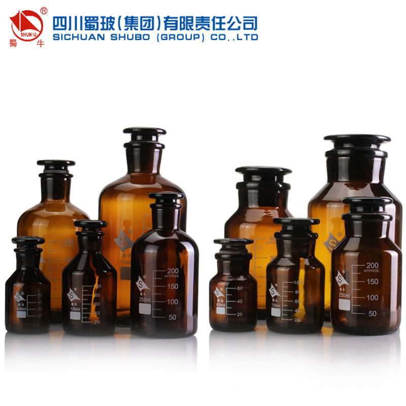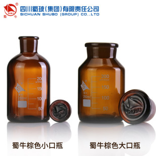 蜀牛 1000ml茶色小口细口磨砂口密封样品瓶实验玻璃仪器带刻度大口透明广口试剂瓶玻璃瓶 玻璃棕色试剂瓶500