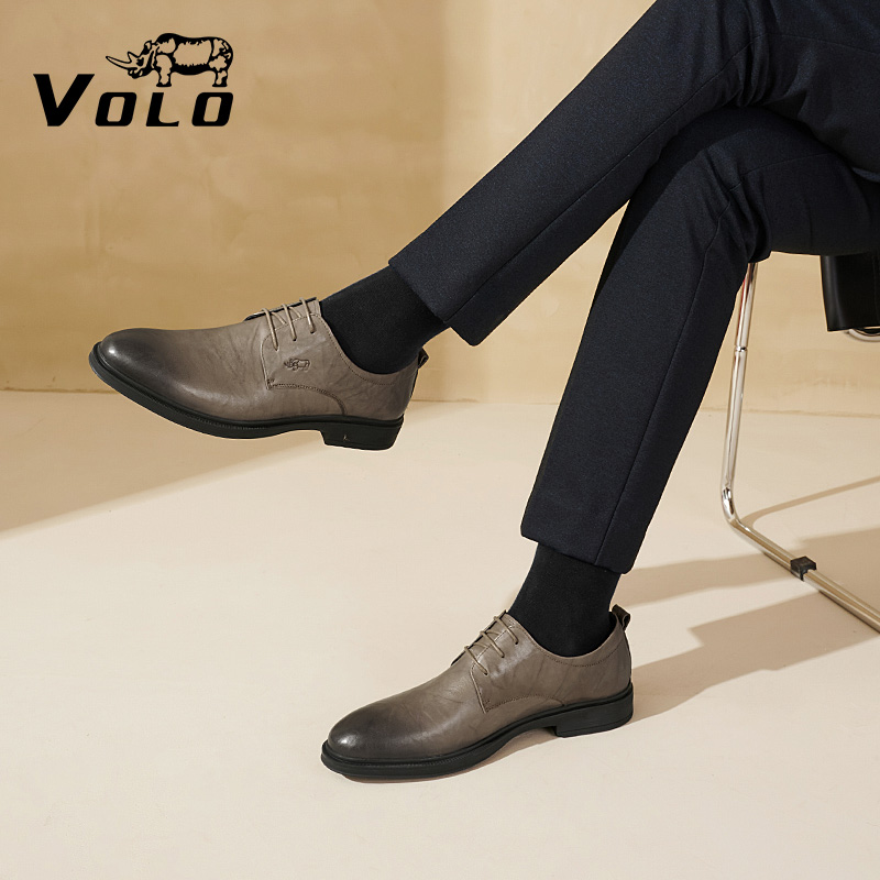 犀牛皮鞋 真皮公务员高级皮鞋 男士 男鞋 尖头增高软底 商务正装 VOLO