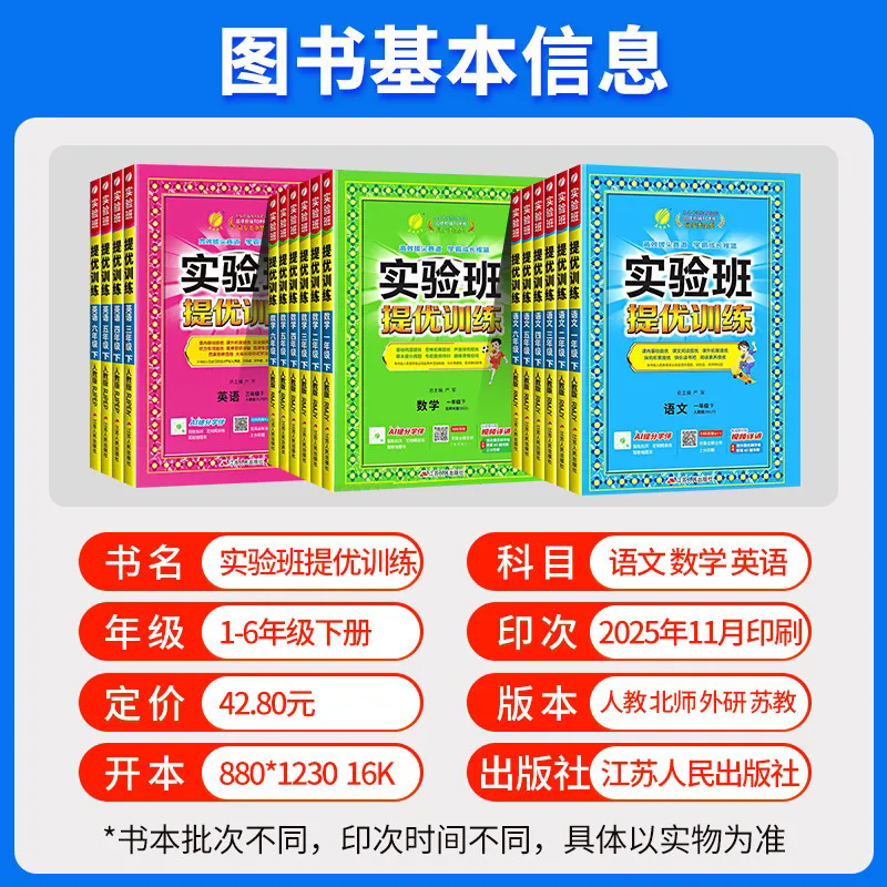 2026春实验班提优训练一二三四五六年级上册下册语文数学英语人教版 苏教北师译林外研科学小学同步训练习册作业本春雨大考卷天天练