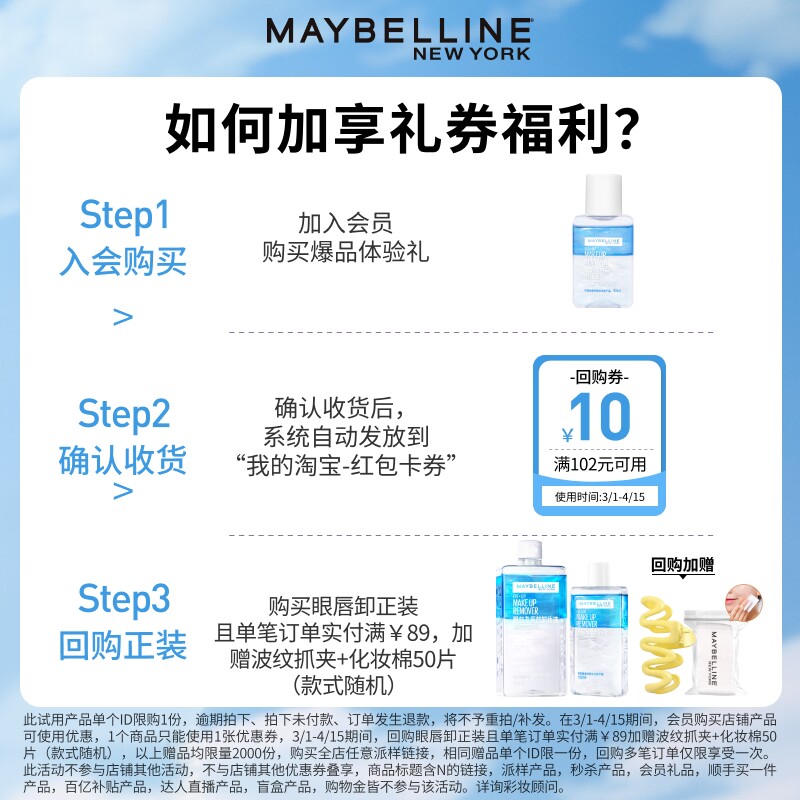 旅行装 美宝莲眼唇卸妆水卸妆油40ml小样试用装 U先试用