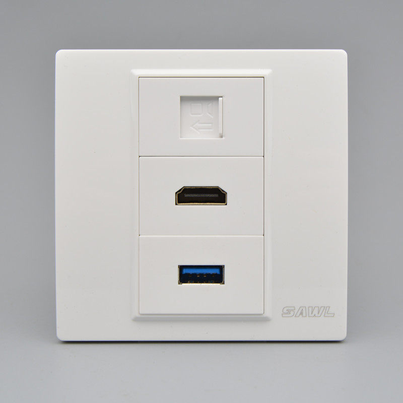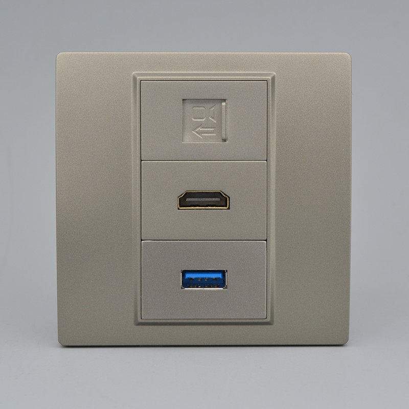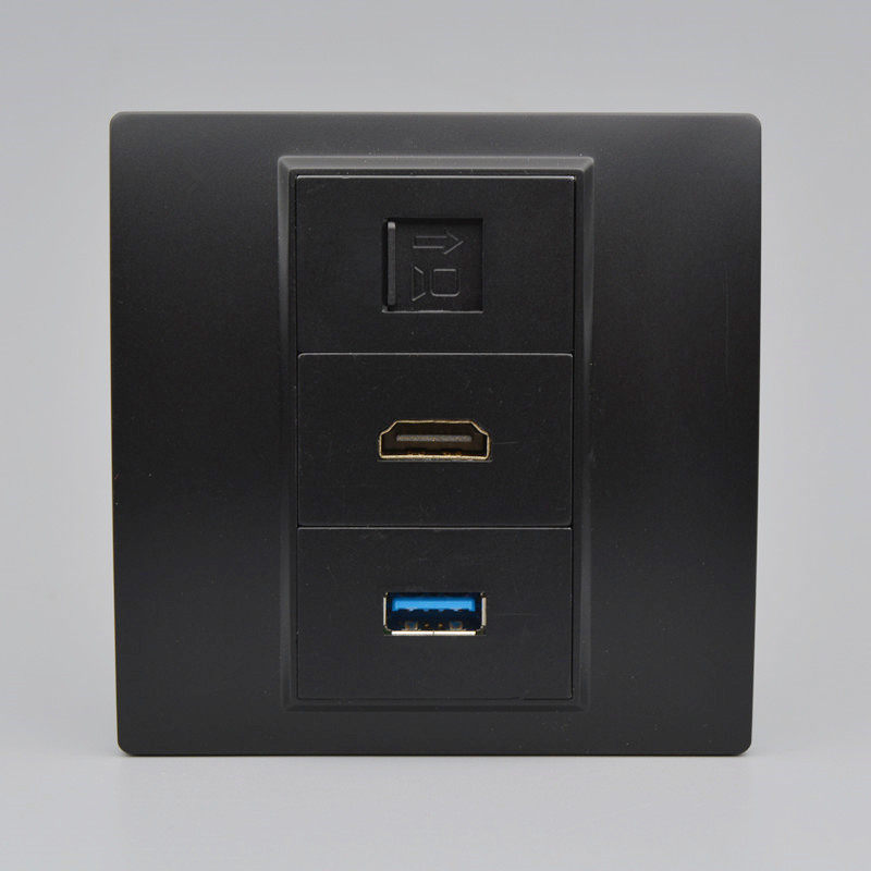 86型网络USB插座千兆六类电脑带4K高清HDMI电视3.0USB延长线面板