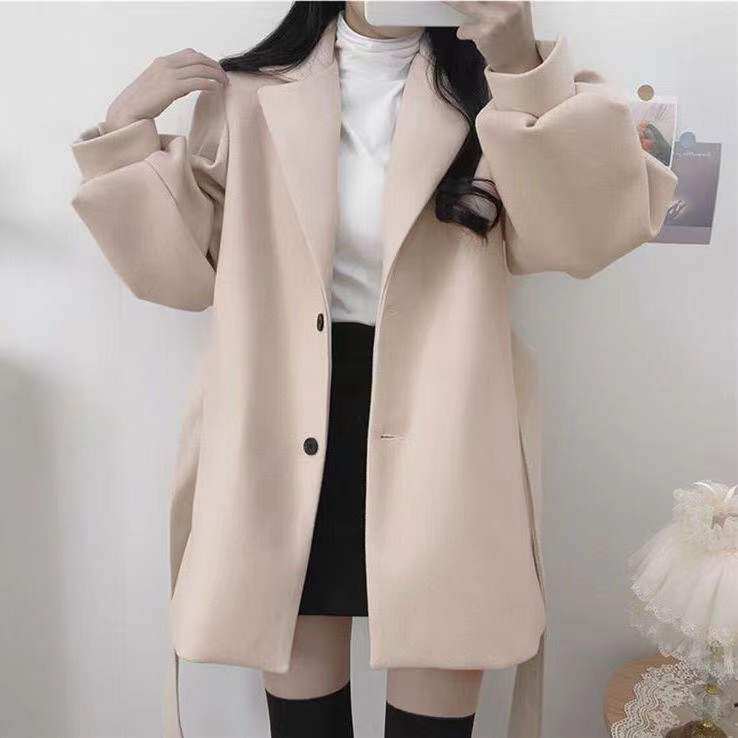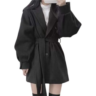 韩版 小个子西装 秋冬装 毛呢大衣气质泡泡袖 领呢子外套女 中长款 新款