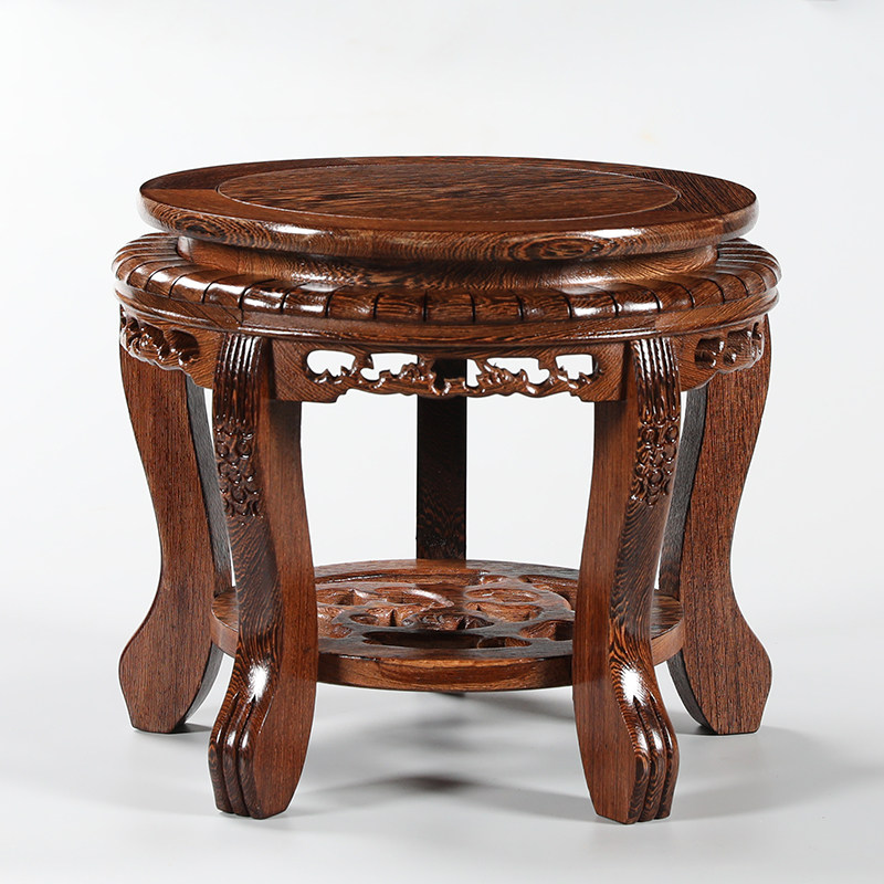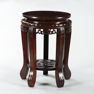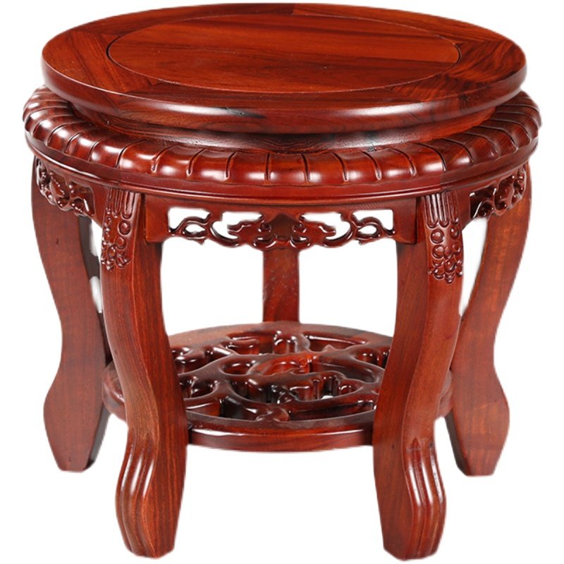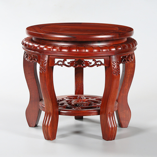 红木雕刻工艺品奇石托架圆形实木质佛像小摆件石头花盆花瓶托底座