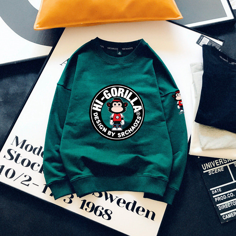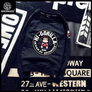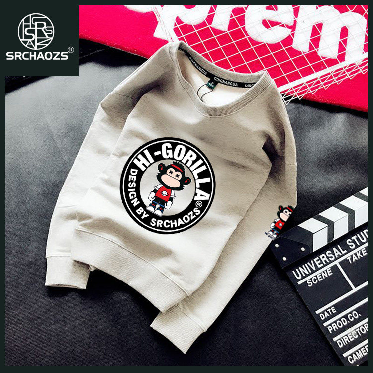 圈圈猩卡通印花圆领套头卫衣男女情侣亲子装 原创2024年春季 新款