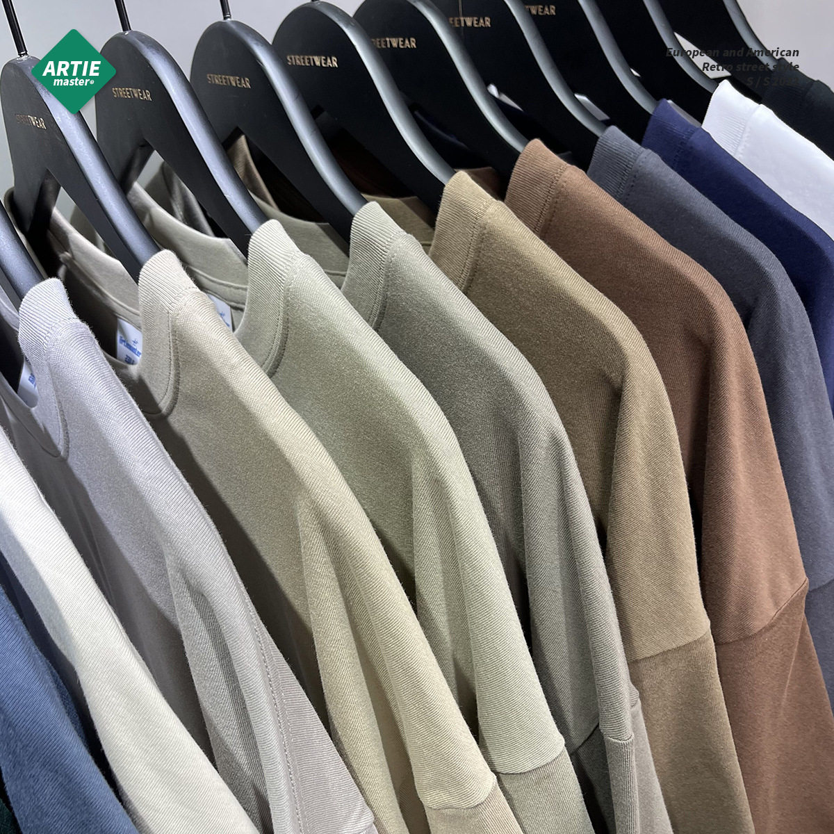 t恤 双纱230克纯棉纯色空白短袖 落肩宽松t恤男定制LOGO 新款 夏季