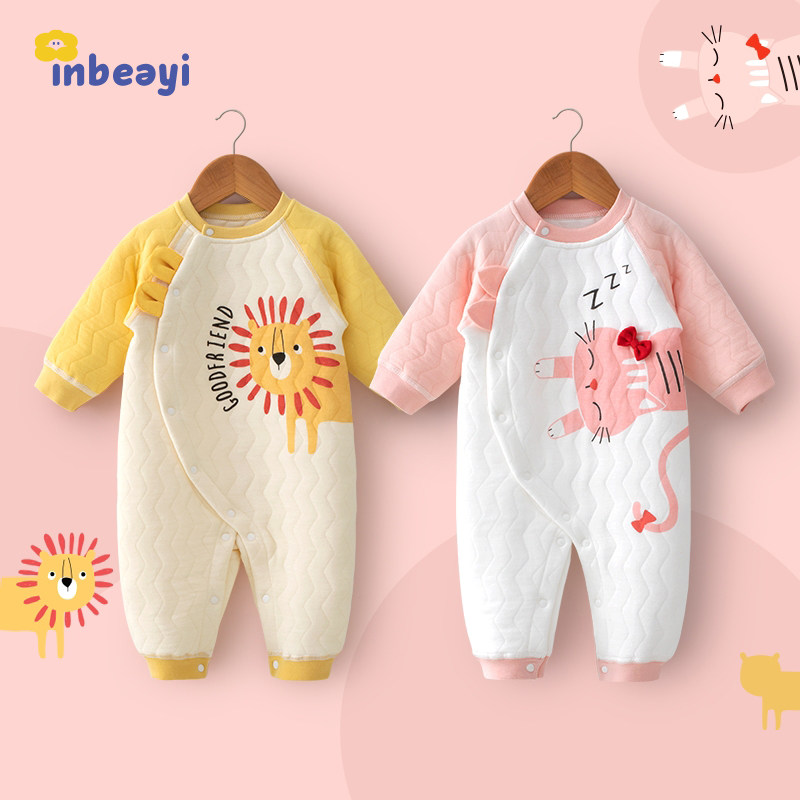 婴蓓依婴儿连体衣男女宝宝哈衣爬服新生儿衣服超萌秋冬装 夹棉保暖
