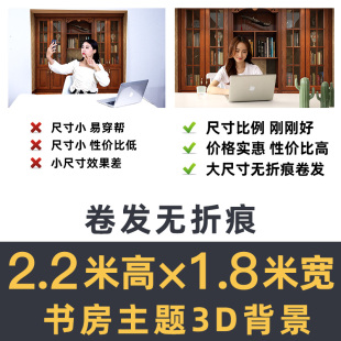 客厅书房主题直播背景布网红直播间装 饰男女书柜拍照3d主播背景布快手背景墙布抖音快手简约房间布置简约