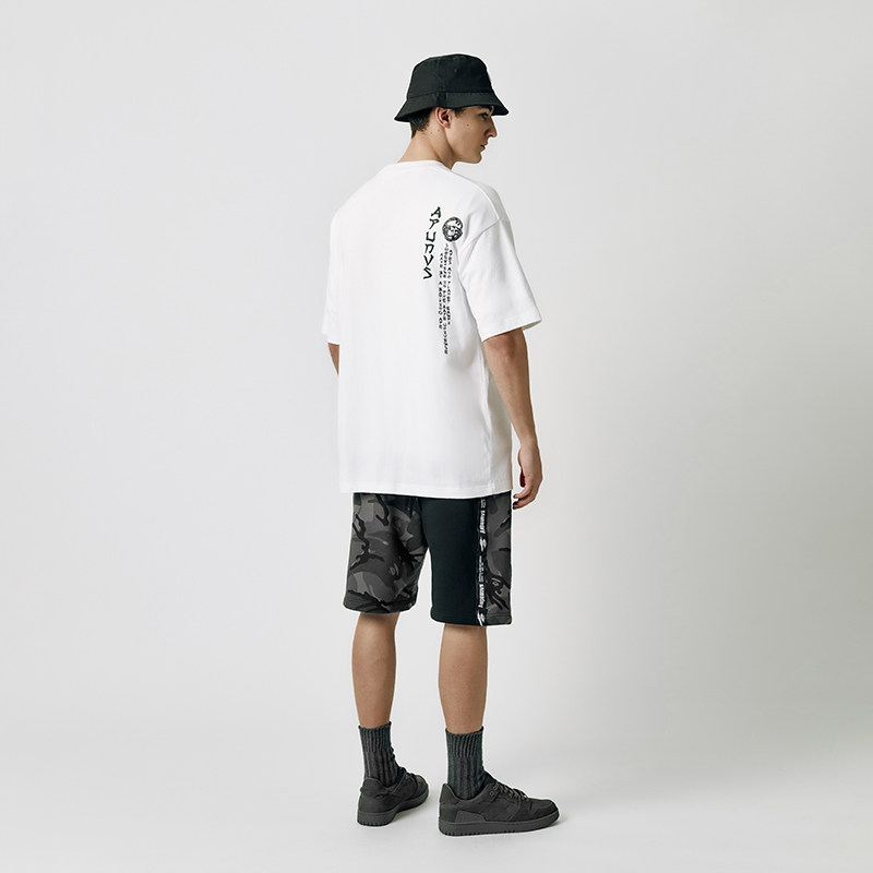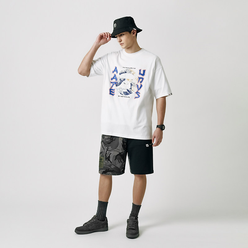 Aape旗舰店男装 6858XXI 春夏猿人徽章字母印花拼接迷彩潮流短裤