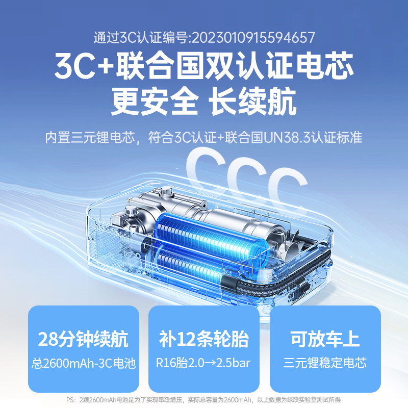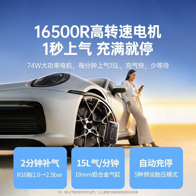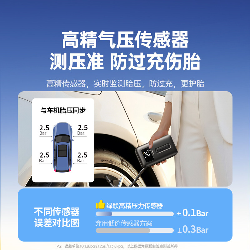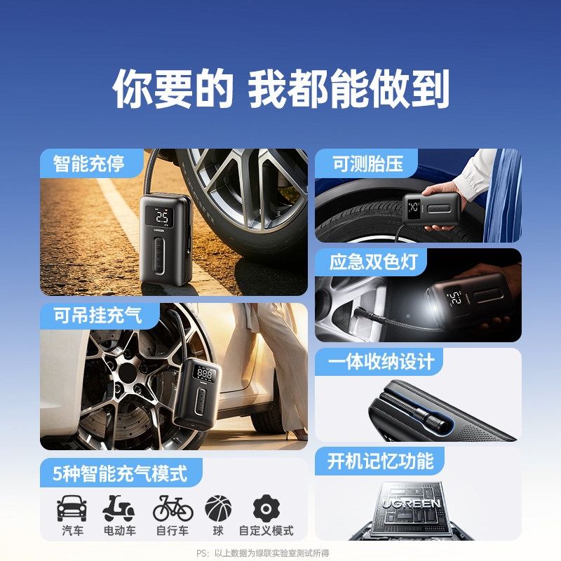 绿联车载充气泵电动打气筒打气泵汽车用测轮胎压自行车无线充气宝