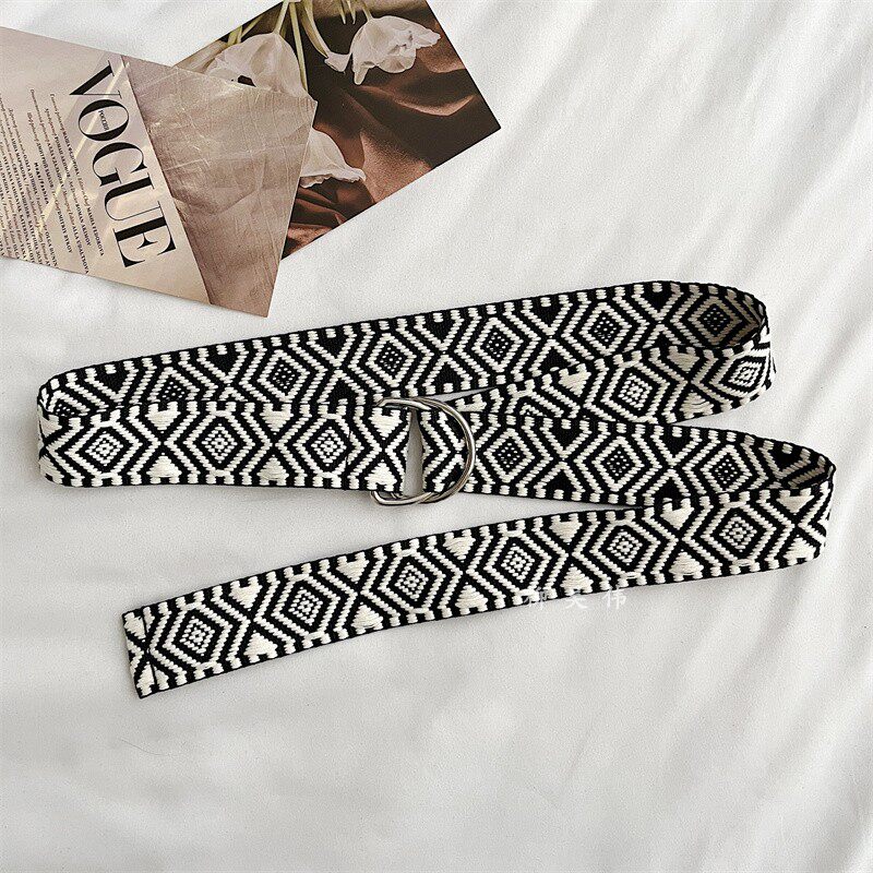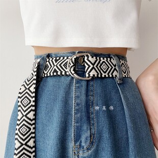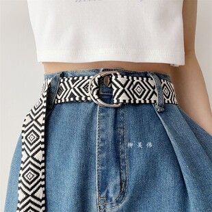 饰女款 百搭学生装 配牛仔裤 腰带男士 带 韩版 裤 双环扣帆布皮带女时尚