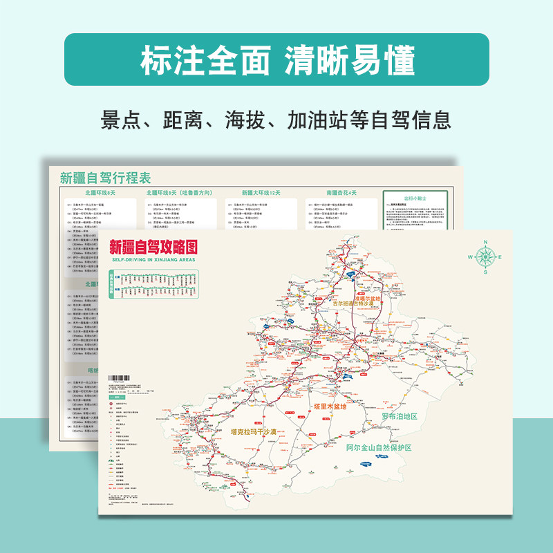 新疆旅游地图西部自驾游攻略图集独库北疆南疆西藏中国旅游2026新版 高清新疆地图北疆大环线伊犁旅行国道景点川西川藏线青甘攻略图