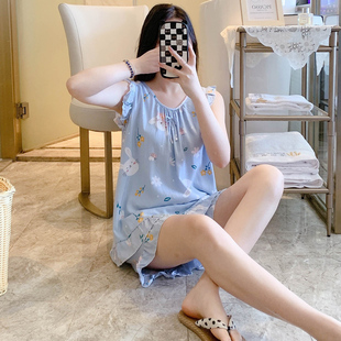 套装 夏季 棉绸大码 无袖 人造棉甜美可爱家居服 绵绸睡衣女士背心薄款