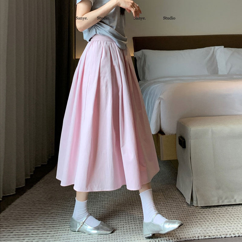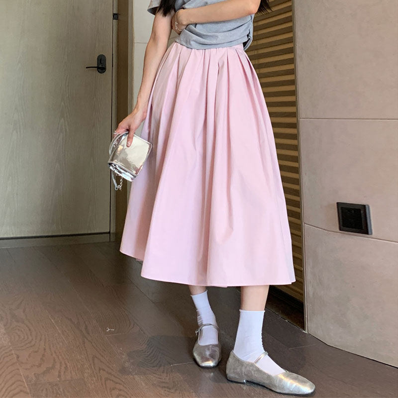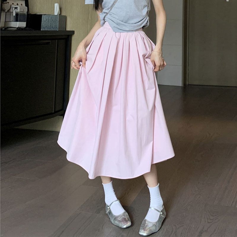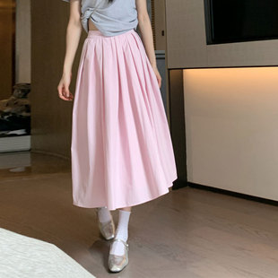 超仙大摆伞裙 高腰a字裙中长款 法式 赫本风淡粉色半身裙女2025夏季