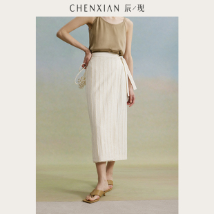 高腰直筒半身裙围裹绑带裙子女 重工条纹剪花一片式 到手199元