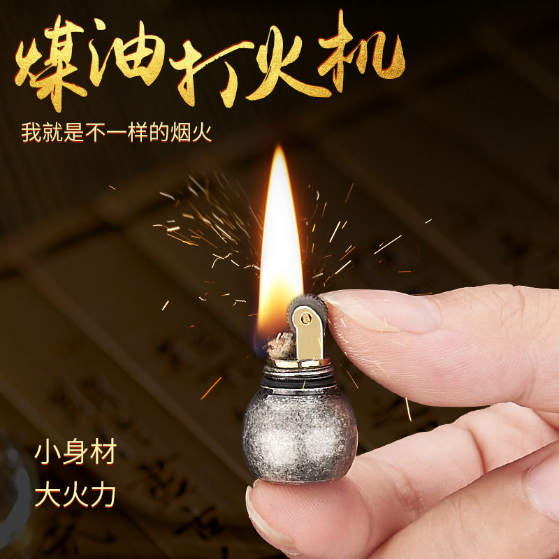 迷你复古砂轮打火机个性 创意钥匙扣挂件煤油打火机跨境