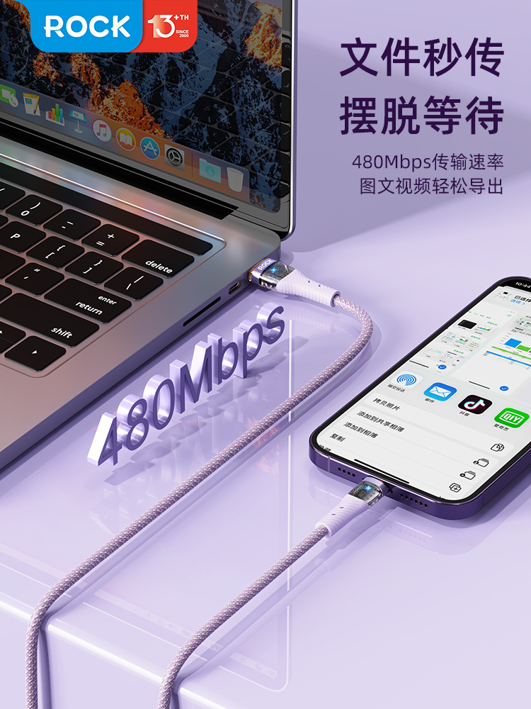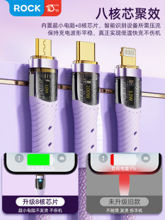 ROCK三合一数据线100W快充适用于苹果type c华为小米安卓平板iPad一拖三6A充电线多功能车载通用充电器线