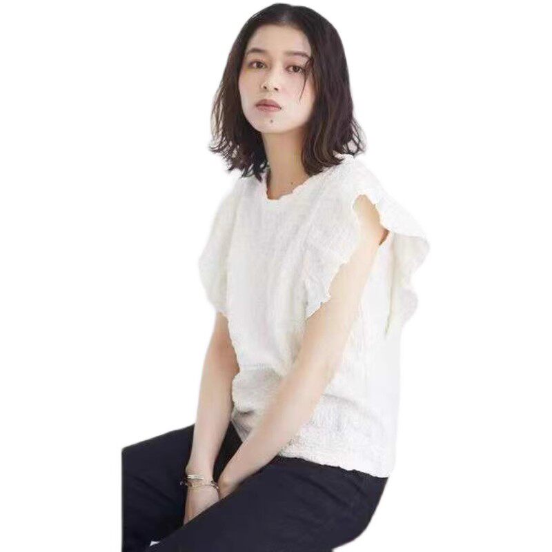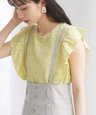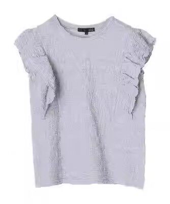 parks 纯色甜美弹力短袖 日本夏季 褶皱荷叶袖 细节赞 新款 green