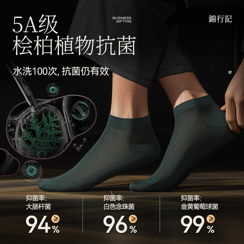 莱赛尔 款 天丝 袜子男春夏季 网眼透气抑菌防臭商务船袜 桑蚕丝