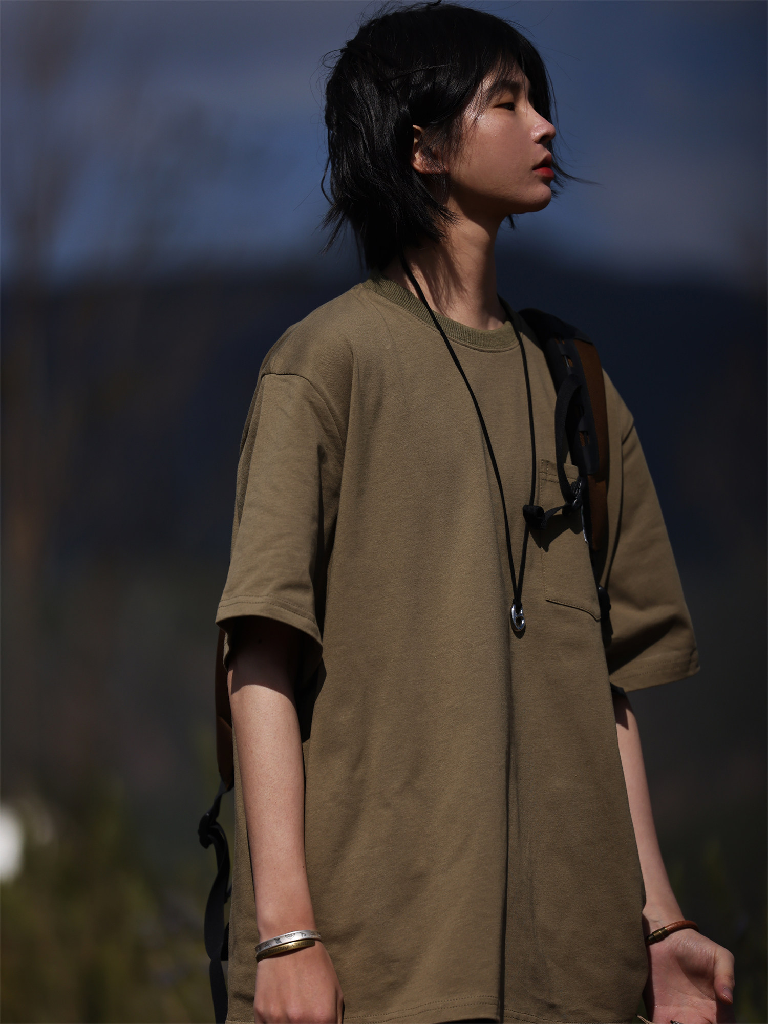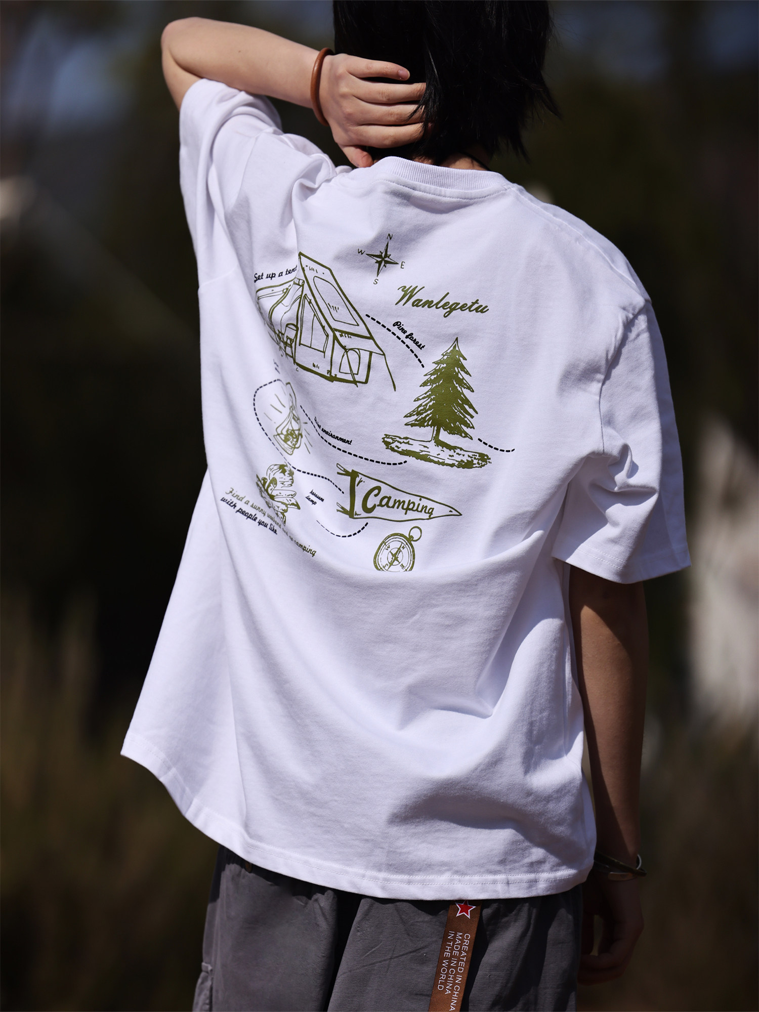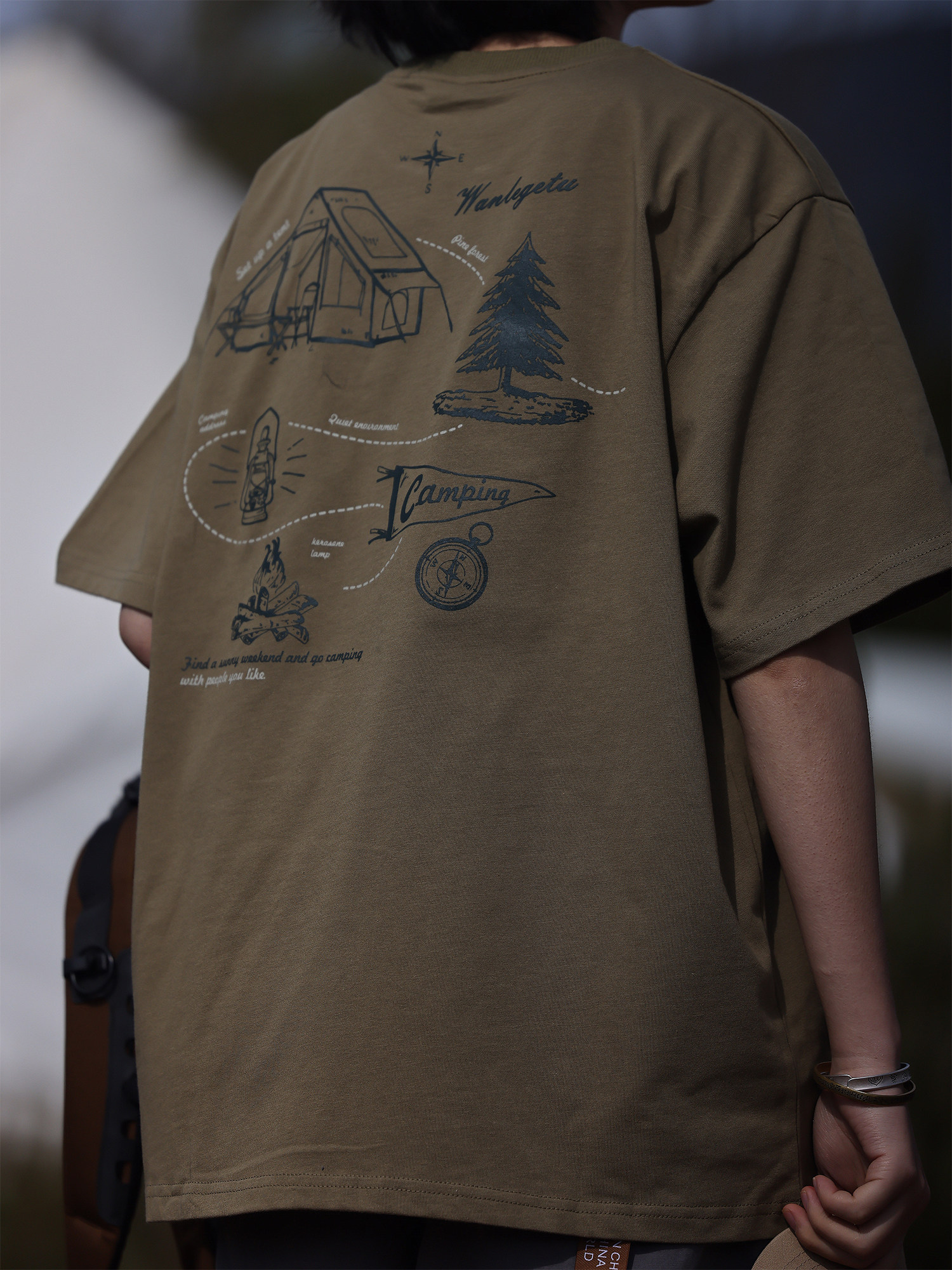 Nobodyknows夏季 宽松T恤 日系复古露营背面字母印花潮流圆领短袖